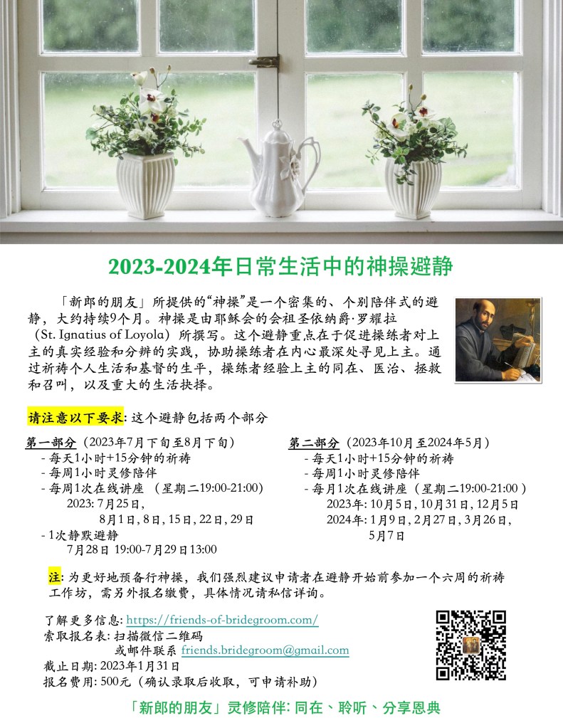 我们现在接受2023-2024年日常生活中的神操避静的报名。