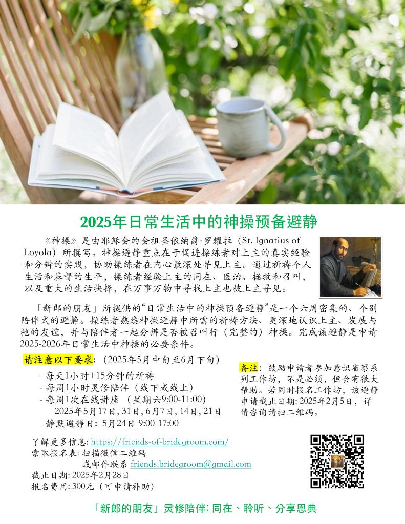 灵修辅导 2025年日常生活中神操预备避静 1月 21, 2025 Faith 分享到: 在 X 上分享(在新窗口中打开) X 在 Facebook 上共享(在新窗口中打开) Facebook 赞 正在加载…… 相关 分享到: 在 X 上分享(在新窗口中打开) X 在 Facebook 上共享(在新窗口中打开) Facebook 赞 正在加载……